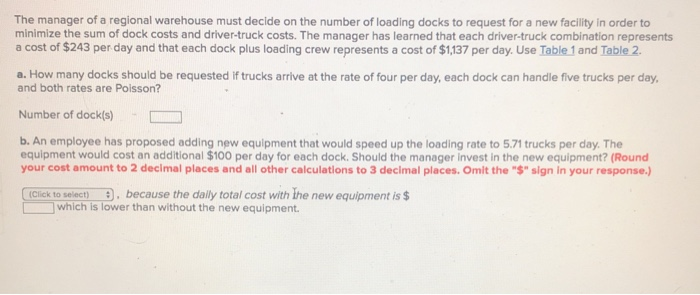 Solved The Manager Of A Regional Warehouse Must Decide On The Num Chegg Com